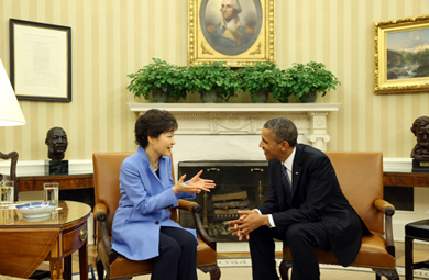 ¹Ú ´ëÅë·É°ú ¿À¹Ù¸¶ ¹Ì±¹ ´ëÅë·ÉÀº 7ÀÏ ¹é¾Ç°ü¿¡¼ Á¤»óȸ´ã°ú ¿ÀÂùȸ´ãÀ» °®°í ÇÑ¹Ì µ¿¸Í°ü°è¸¦ Æ÷°ýÀû Àü·«µ¿¸Í¿¡¼ Çѹݵµ¸¦ ³Ñ¾î µ¿ºÏ¾Æ Áö¿ª°ú ¹ü¼¼°èÀû ¹®Á¦±îÁö ÇÔ²² Çù·ÂÇÏ´Â ¸í½Ç»óºÎÇÑ ¡®±Û·Î¹ú ÆÄÆ®³Ê½Ê¡¯À¸·Î °Ý»óÇѴٴµ¥ ÇÕÀÇÇß´Ù.