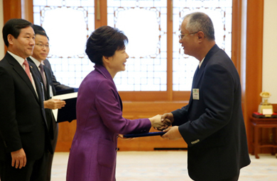 ¹Ú ´ëÅë·ÉÀº ÀÌ ³¯ û¿Í´ë¿¡¼ ¹®ÈÀ¶¼ºÀ§¿øÈ¸ ¹Î°£À§¿øµé¿¡°Ô À§ÃËÀåÀ» ¼ö¿©ÇÑ µÚ ù ȸÀǸ¦ ÁÖÀçÇÑ ÀÚ¸®¿¡¼ À̰°ÀÌ ¹àÇû´Ù.