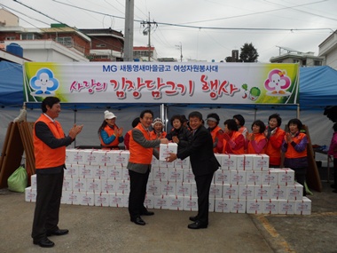 Ãß¿î ³¯¾¾ ¼Ó¿¡¼µµ ȸ¿øµéÀº ÀÌ¿ôÀ» µ½´Â´Ù´Â Áñ°Å¿î ¸¶À½À¸·Î ±èÄ¡ 70¹Ú½º¸¦ ÁغñÇß°í, Á¤¼ºÀÌ ´ã±ä ±èÄ¡´Â ºÏ½Åµ¿ °ü³» ±âÃÊ»ýȰ¼ö±ÞÀÚ, µ¶°Å³ëÀÎ ¹× Àú¼Òµæ, °æ·Î´ç µî¿¡ Àü´ÞµÇ¾î Ãß¿î °Ü¿ïÀ» ³ª´Â À̵鿡°Ô µû¶æÇÑ Á¤À» ÀüÇß´Ù.