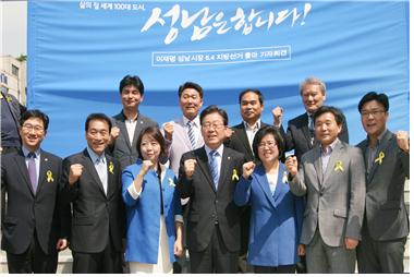 ÀÌÀç¸í ½ÃÀåÀº 14ÀÏ ¿ÀÀü10½Ã ¼º³²½Ã¸³ÀÇ·á¿ø °ø»çÇöÀå(±¸ ½Ãû) ¾Õ¿¡¼ ±âÀÚȸ°ßÀ» ¿¾î 6¡¤4 Áö¹æ¼±°Å ¼º³²½ÃÀå Ã⸶¸¦ °ø½Ä ¼±¾ðÇÏ¸é¼ 100¸¸ ½Ã¹ÎµéÀÇ ±Ç¸®¸¦ º¸ÀåÇϱâ À§ÇÑ ±Ç¸®¼±¾ðÀ» ¹ßÇ¥ÇÏ¸é¼ ¡®ÁøÂ¥ ¾à¼Ó¡¯ ´ë ¡®°ÅÁþ ¾à¼Ó¡¯ÀÇ °æÀïÀ» °Á¶ÇÏ¸é¼ ÀÌ °°ÀÌ ¹àÇû´Ù.