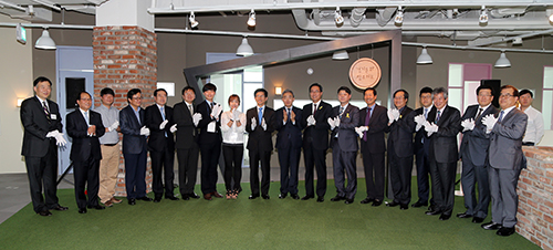 19ÀÏ ¿ÀÈÄ ÆÇ±³Å×Å©³ë¹ë¸®¿¡¼­ ¿­¸° "°æ±â¹®È­Ã¢Á¶ Çãºê °³¼Ò½Ä"¿¡ Âü¼®ÇÑ ±è¹®¼ö °æ±âµµÁö»ç°¡ ÇöÆÇ Á¦¸·½ÄÀ» Çϰí À¯Áø·æ ¹®È­Ã¼À°ºÎÀå°ü, ÀüÇÏÁø ±¹È¸ÀÇ¿øÀ» ºñ·ÔÇÑ Âü¼®ÇÑ ³»ºóµé°ú ±â³äÃÔ¿µÀ» Çϰí ÀÖ´Ù.