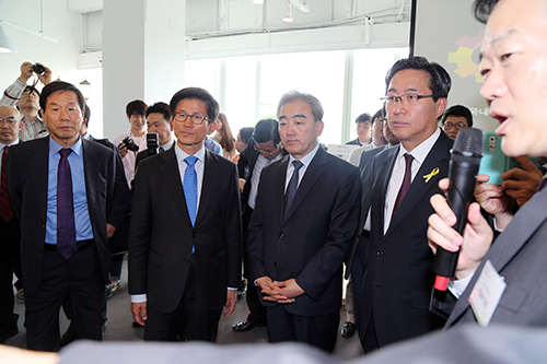 19ÀÏ ¿ÀÈÄ ÆÇ±³Å×Å©³ë¹ë¸®¿¡¼­ ¿­¸° "°æ±â¹®È­Ã¢Á¶ Çãºê °³¼Ò½Ä"¿¡ Âü¼®ÇÑ ±è¹®¼ö °æ±âµµÁö»ç°¡ À¯Áø·æ ¹®È­Ã¼À°ºÎÀå°ü, ÀüÇÏÁø ±¹È¸ÀÇ¿ø°ú ½Ã¼³À» Åõ¾îÇϰí ÀÖ´Ù
