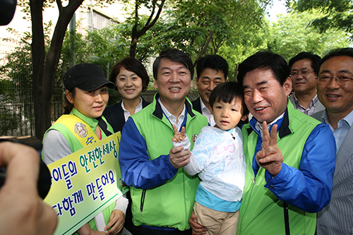 »õÁ¤Ä¡¹ÎÁÖ¿¬ÇÕ °æ±âµµÁö»ç ±èÁøÇ¥ È帴 °ø½Ä¼±°Å¿îµ¿ ù³¯ÀÎ 22ÀÏ ¿ÀÀü 7½Ã30ºÐ ¼ö¿ø½Ã ¿µÅ뵿 ½Å¿µÃʵîÇб³ ¾Õ¿¡¼­ ¾Èö¼ö °øµ¿´ëÇ¥¿Í ÇÔ²² ¾ÆÀ̵éÀÌ ¾ÈÀüÇÑ °æ±âµµ '¾î¸°À̱³Åë ¾ÈÀü Ä·ÆäÀÎ'À» ÆîÄ¡°í ÀÖ´Ù.