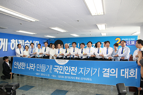 »õÁ¤Ä¡¹ÎÁÖ¿¬ÇÕ °æ±âµµÁö»ç ±èÁøÇ¥ È帴 °ø½Ä¼±°Å¿îµ¿ ù³¯ÀÎ 22ÀÏ ¿ÀÈÄ 8½Ã30ºÐ ¼ö¿ø½Ã ÆÈ´Þ±¸ ±èÁøÇ¥ µëÁ÷Ä·ÇÁ ¼±°Å´ëÃ¥À§ ºê¸®Çη뿡¼­ ´ç ÁöµµºÎµéÀÌ Âü¼®ÇÑ °¡¿îµ¥ ÃâÁ¤½ÄÀ» ¿­°í, '¾È³çÇÑ ³ª¶ó ¸¸µé±â! ±¹¹Î¾ÈÀü Áö۱⠰áÀÇ ´ëȸ'¸¦ °¡Á³´Ù.