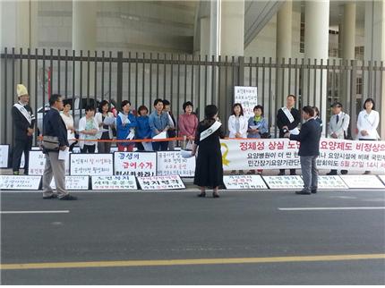 ÀÌÈÄ ½Ã°£ ÀÌÁö³ª¸é¼ Àü±¹ÀÇ Çùȸ ÁýÇàºÎ ȸ¿øµéÀÌ ¸ðÀÌ¸é¼ ¹Î°£Àå±â¿ä¾ç±â°ü »ç¼ö¸¦ À§ÇÑ ºñ»ó´ëÃ¥À§À§¿øÈ¸ °á¼º°ú º¸°Çº¹ÁöºÎ Àå°ü¿¡°Ô º¸³»´Â °á¼º¹®À» äÅÃÇÏ¿´°í ³ëÀÎ Àå±â¿ä¾çº¸ÇèÁ¦µµ°¡ ½ÃÀÛµÈ 2008³â ÀÌÈÄ Áö³ 6³âµ¿¾È º¸°Çº¹ÁöºÎ¿Í ±¹¹Î°Ç°º¸Çè°ø´ÜÀÇ Àϰü¼º ¾ø´Â Ź»óÇàÁ¤½Ä ³ëÀκ¹ÁöÇàÁ¤°ú ¹ý¿¡µµ ¸ÂÁö ¾Ê´Â µµ ¿¡ Áö³ªÄ£ ¹Î°£ ±â°üÅëÁ¦ ¿Í ÅξøÀÌ ºÎÁ·ÇÑ ¼ö°¡ Ã¥Á¤À¸·Î ÀÎÇÏ¿© ÇöÀç Àå±â¿ä¾ç±â°üµéÀÌ »ýÁ¸ÀÇ À§ÇùÀ» ¹Þ°í ÀÖ´Â ½ÃÁ¡ À̶ó°í ÇÏ¿´´Ù