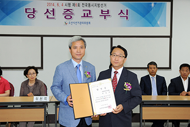 °û»ó¿í Çö ½ÃÀå, ¿À»ê½ÃÀå ´ç¼±Áõ ±³ºÎ¹Þ¾Æ - ¿À´Â 7¿ù 1ÀÏ ÃëÀÓ½Ä °®°í ¹Î¼±6±â Ãâ¹ü ¿¹Á¤ |