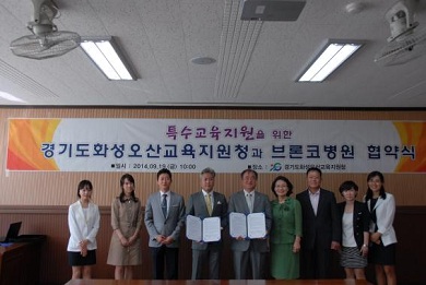 °æ±âµµ ȼº¿À»ê±³À°Áö¿øÃ»(±³À°Àå °À±¼®)°ú ºê·ÐÄÚ ±â³äº´¿ø(º´¿øÀå ȲÁØÇÏ)ÀÌ 2014³â 9¿ù 18ÀÏ ¸ñ¿äÀÏ Àå¾Ö¿µ¾Æ¹ß´Þ°Ë»ç ¹× Ä¡·áÁö¿ø¿¬¼ö¿Í °ü·ÃÇÏ¿© MOU¸¦ ü°áÇß´Ù.