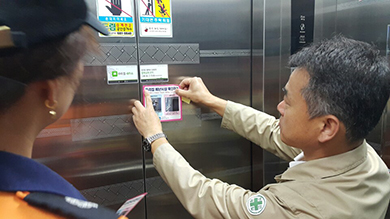 ÀÌ¿¡ ¼Ûź¼Ò¹æ¼´Â Çdz½Ã¼³ÀÌ ¼³Ä¡µÈ ¾ÆÆÄÆ®ÀÇ µ¿º° ¿¤¸®º£ÀÌÅÍ ³»¿¡ Çdz½Ã¼³ ¾È³»½ºÆ¼Ä¿¸¦ ºÎÂø, ¿À°¡´Â ÁֹεéÀÌ ¹Ýº¹ÀûÀ¸·Î ¼÷ÁöÇÏ¿© À¯»ç ½Ã Àû±Ø Ȱ¿ëÇÒ ¼ö ÀÖµµ·Ï ÇÏ°í °ü¸®¼ÒÀå¿¡°Ô Çdz½Ã¼³ ¾Õ Àå¾Ö¹° ÀûÄ¡ ±ÝÁö µî À¯Áö°ü¸®¿Í Ȱ¿ë ¾È³»¹æ¼ÛÀ» ÁÖ±âÀûÀ¸·Î ½ÃÇàÇØ ÁÙ °ÍÀ» ´çºÎÇß´Ù.