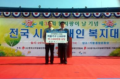±¹¸³ ÇѰæ´ëÇб³(ÃÑÀå Źü¼®)´Â 15ÀÏ °æ±âµµ °¡ÆòÁ¾ÇտÀå¿¡¼ ¿¸° ¡°Á¦35ȸ ÈòÁöÆÎÀÌÀÇ ³¯ ±â³ä Àü±¹ ½Ã°¢Àå¾ÖÀÎ º¹Áö´ëȸ¡±¿¡¼ Çѱ¹ ½Ã°¢Àå¾ÖÀÎ ¿¬ÇÕȸ¿¡ 2õ¸¸¿ø »ó´çÀÇ ½Ã°¢Àå¾ÖÀÎ¿ë ÆÛÁñ±â±¸¸¦ ±âÁõÇß´Ù.