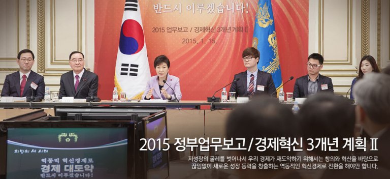 ¹Ú±ÙÇý ´ëÅë·ÉÀº °æÁ¦ Àçµµ¾àÀ» À§Çؼ âÀÇ¿Í Çõ½ÅÀ» ¹ÙÅÁÀ¸·Î ÇÑ ¿ªµ¿Àû Çõ½Å°æÁ¦ ÀüȯÀ» °Á¶Çϰí, À̸¦ À§ÇØ ¡®Ã¢Á¶°æÁ¦ÀÇ ±¸Çö¡¯, ¡®¹Ì·¡´ëºñ ÅõÀÚ¡¯, ¡®¼¼°è½ÃÀå °æÀï·Â Çâ»ó¡¯À» ÇٽɰúÁ¦·Î ÁÖ¹®Çß½À´Ï´Ù.