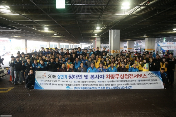 ȼº½Ã¿Í ȼº½ÃÀÚ¿øºÀ»ç¼¾ÅͰ¡ ÈÄ¿øÇÏ°í °æ±âµµÀÚµ¿Â÷Àü¹®Á¤ºñ»ç¾÷Á¶ÇÕ(Ä«Æ÷½º) ȼº½ÃÁöȸ°¡ ÁÖ°üÇÑ ¡®2015 »ó¹Ý±â Àå¾ÖÀÎ ¹× ºÀ»çÀÚÂ÷·® ¹«»óÁ¡°Ë¼ºñ½º Çà»ç¡¯°¡ Áö³ 19ÀÏ È¼ºÁ¾ÇÕ°æ±âŸ¿î ÁÖÂ÷Àå¿¡¼ ÁøÇàµÆ´Ù.
