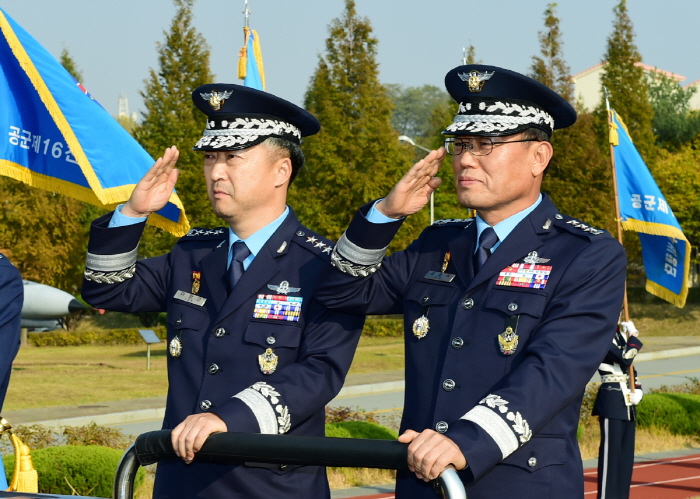 À̿ձ٠½ÅÀÓ »ç·É°ü(¿À¸¥ÂÊ)ÀÌ Á¤°æµÎ °ø±ºÂü¸ðÃÑÀå(¿ÞÂÊ)À¸·ÎºÎÅÍ ÁöÈÖ±Ç À̾çÀ» ÀǹÌÇÏ´Â ºÎ´ë±â¸¦ ¼ö¿©¹Þ°í ÀÖ´Ù.
