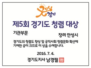 ¾È¼º½Ã, Á¦5ȸ °æ±âµµ û·Å´ë»ó Æò°¡ ¿ì¼ö±â°ü ¼±Á¤ |