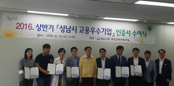 ¼º³²½Ã(½ÃÀå ÀÌÀç¸í)´Â °í¿ë »çÁ¤ÀÌ ¾î·Á¿î ¿©°Ç ¼Ó¿¡¼µµ ½Ã¹Î ÀÏÀÚ¸® âÃâ¿¡ ³ë·ÂÇÑ 7°÷ÀÇ ¿ì¼ö±â¾÷À» ¼±Á¤ÇØ 8¿ù 24ÀÏ ÀÎÁõ¼¿Í ÇöÆÇÀ» Áá´Ù.