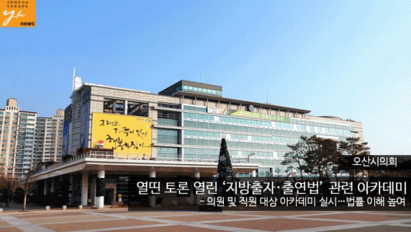 ¿À»ê½ÃÀÇȸ(ÀÇÀå ¼ÕÁ¤È¯)°¡ Áö¹æÀÚÄ¡´Üü ÃâÀÚ¡¤Ã⿬ ±â°üÀÇ ¿î¿µ¿¡ °üÇÑ ÀÇ¿ø ¾ÆÄ«µ¥¹Ì¸¦ ÀÇ¿ø°ú Á÷¿øÀ» ´ë»óÀ¸·Î ½Ç½ÃÇß´Ù.