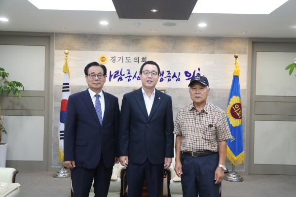 °æ±âµµÀÇȸ Á¤±â¿ ÀÇÀå(´õºÒ¾î¹ÎÁÖ´ç, ¾È¾ç4)Àº 26ÀÏ °æ±âµµÀÇȸ ÀÇÀå Á¢°ß½Ç¿¡¼ (»ç)Àü±¹Çб³´çÁ÷±â»çÇùȸ ÃÖ½ÂÁø ȸÀå°ú Çѱ⺹ ºÎȸÀåÀ» ¸¸³µ´Ù.