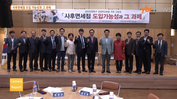 ¿øÀ¯Ã¶ ±¹È¸ÀÇ¿øÀÌ ÆòÅà ±¸µµ½É Áö¿ª°æÀï·ÂÀ» ³ôÀ̱â À§ÇØ ¡®»çÈĸ鼼Á¡ µµÀÔ °¡´É¼º°ú ±× °úÁ¦¡¯¿¡ ´ëÇÑ ÁÖÁ¦·Î °£´ãȸ¸¦ ¿¾ú½À´Ï´Ù.