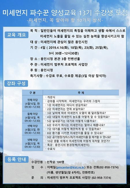 ¿ëÀνÃ, ¹Ì¼¼¸ÕÁö Àü¹®°¡ ¾ç¼º °úÁ¤ ¿î¿µ - 16, 18, 23, 25ÀÏ 4Àϰ£ ÁøÇà |