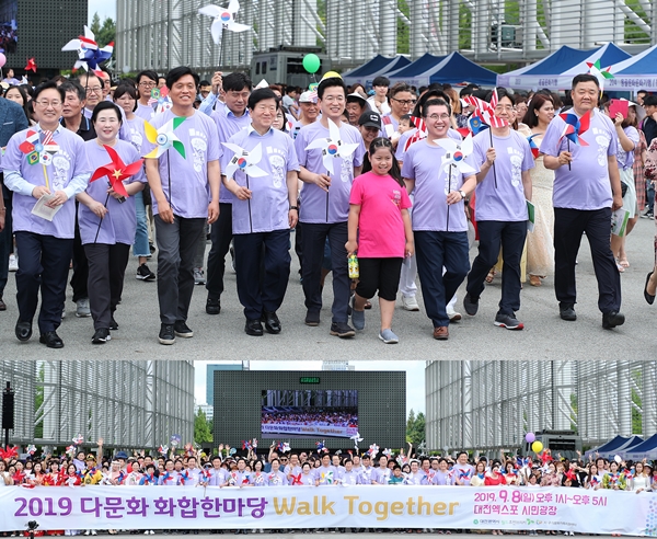 ´Ù¹®È°¡Á·°ú ½Ã¹ÎµéÀÌ ÇÔ²² °È°í, ¼¼°è °¢±¹ÀÇ ¹®È¸¦ Áñ±æ ¼ö ÀÖ´Â ´ëÀü ÃÖ´ë ±Ô¸ðÀÇ ´Ù¹®È ÃàÁ¦ ¡®2019 ´Ù¹®ÈÈÇÕÇѸ¶´ç¡¤Walk Together¡¯°¡ 8ÀÏ ¿ÀÈÄ 1½ÃºÎÅÍ 5½Ã±îÁö ´ëÀü ¿¢½ºÆ÷ ½Ã¹Î±¤Àå¿¡¼ ¿·È´Ù.