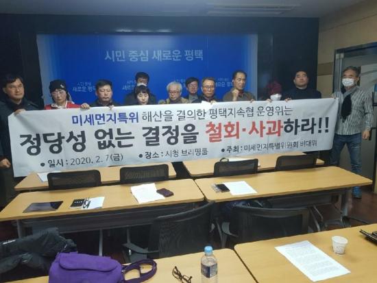 ¹Ì¼¼¸ÕÁöƯº°À§¿øÈ¸(ÀÌÇÏ "¹Ì¼¼Æ¯À§") ºñ´ëÀ§(À§¿øÀå Á¶Á¾°Ç)´Â ÆòÅýÃÁö¼Ó°¡´É¹ßÀüÇùÀÇȸ(ÀÌÇÏ "ÆòÅÃÁö¼ÓÇù") »óÀÓ´ëÇ¥ °â ¿î¿µÀ§¿øÀå ¼ÕÀÇ¿µÀÌ ¹Ì¼¼Æ¯À§¸¦ ÇØ»êÇÏ´Â °úÁ¤¿¡¼ »ç¶÷ÀÇ Áö¹è°¡ ¾Æ´Ñ ¹ýÀÇ Áö¹èÀÎ ¹ýÄ¡ÁÖÀÇ Á¤½ÅÀÇ ±Ù°£À» ÈѼÕÇß°í, ¹Ì¼¼Æ¯À§ À§¿øµé°ú Åä·Ð °úÁ¤À» ÀüÇô °ÅÄ¡Áö ¾ÊÀº ´Ù¼ö°áÀÇ È¾Æ÷¶ó¸ç 2¿ù 7ÀÏ ÆòÅýà ½Ãûºê¸®Çνǿ¡¼ ¼º¸í¼¸¦ ¹ßÇ¥ Çß´Ù.