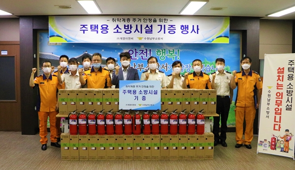 ¼ö¿ø³²ºÎ¼Ò¹æ¼´Â 17ÀÏ ¿ÀÀü ¢ß°è¾çÀÌ¿£¾¾¿Í ¼Ò¹æ¼ 2Ãþ ¼ÒȸÀǽǿ¡¼ ÁÖÅÃ¿ë ¼Ò¹æ½Ã¼³ ±âÁõ½Ä Çà»ç¸¦ °®°í Áö¿ª»çȸ ¾ÈÀü¾àÀÚ¿¡°Ô ¼Ò¹æ½Ã¼³À» ±âºÎÇÑ´Ù°í ¹àÇû´Ù.