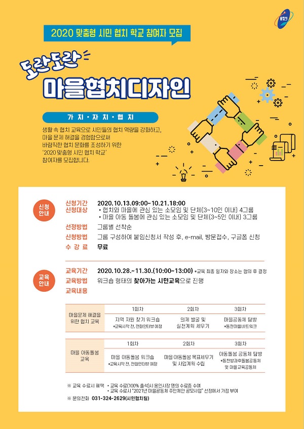 ¿ëÀνô ÇùÄ¡ ¿ª·®À» °ÈÇϰí ÁֹΠ½º½º·Î ¸¶À» ¹®Á¦¸¦ ÇØ°áÇÒ ¼ö ÀÖµµ·Ï ¡®½Ã¹ÎÇùÄ¡Çб³¡¯°úÁ¤À» °³¼³ÇØ Âü°¡ÀÚ¸¦ ¸ðÁýÇÑ´Ù.