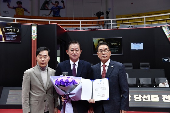 ¿¬¸ÍÀº 13ÀÏ 2023 µÎ³ª¹« Çѱ¹ÇÁ·Îʱ¸¸®±×°¡ ¿¸®°í ÀÖ´Â ±¤±³Ã¼À°°ü(½ºÆ©µð¿ÀT)¿¡¼ À̺´¹è ´ç¼±ÀÎ(60)¿¡°Ô ´ç¼±ÁõÀ» Àü´ÞÇß´Ù. ¿¬¸ÍÀÇ ³²¸¸Áø ¼±°Å°ü¸®À§¿øÀåÀÌ ´ç¼±ÁõÀ» °Ç³Þ°í, À¯³²±Ô ½Ç¹«ºÎȸÀå(Çѱ¹°Å·¡¼Ò °¨µ¶)ÀÌ ²É´Ù¹ß·Î ÃàÇÏÇß´Ù. À̺´¹è ´ç¼±ÀÎÀº Áö³ 10ÀÏ ³¡³ ¿¬¸ÍÀÇ Á¦21´ë ȸÀå¼±°Å¿¡¼ ´Üµ¶À¸·Î ÀÔÈĺ¸, ¼±°Å°ü¸®À§¿øÈ¸ÀÇ Àڰݽɻ縦 °ÅÃÄ ´ç¼±ÀÌ È®Á¤µÆ´Ù.