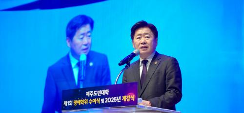 Á¦ÁÖµµ¹Î´ëÇÐ ÇÐÀåÀÎ ¿À¿µÈÆ Áö»ç´Â ¡°Á¦ÁÖµµ¹Î´ëÇÐÀÇ Áö³ 1³â°£ÀÇ ¼º°ú´Â µµ¹ÎµéÀÇ Æò»ýÇнÀ¿¡ ´ëÇÑ ¶ß°Å¿î ¿¸ÁÀ» Áõ¸íÇßÀ¸¸ç, 63¸íÀÇ ¸í¿¹ÇÐ»ç ¹èÃâÀº ±× °¡Ä¡¸¦ ÀÔÁõÇÏ´Â °á½Ç¡±À̶ó°í °Á¶ Çß´Ù.