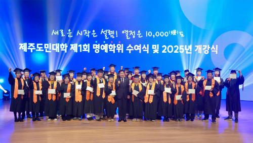 ¿À¿µÈÆ µµÁö»ç¸¦ ºñ·ÔÇÑ ÀÌ»óºÀ Á¦ÁÖµµÀÇȸ ÀÇÀå, ±è±¤¼ö Á¦ÁÖÆ¯º°ÀÚÄ¡µµ ±³À°°¨°ú ºÎÀ±Á¤ Á¦ÁÖÇѶó´ëÇб³ Æò»ý±³À°¿øÀå, ¹Ú³²±Ô Á¦ÁÖ°ü±¤´ëÇб³ Æò»ý±³À°¿øÀå ¹× µµ³» Çù·Â±â°üÀÎ ³óÇùº»ºÎ ÀÓ¿ø ¹× ±è³ç, ÇϱÍ, Á¶Ãµ³óÇù Á¶ÇÕÀå µî°ú Á¦ÁÖµµ¹Î 400¿©¸íÀÌ Âü¼®ÇÏ¿©, 2024Çг⵵ ¼ö¾÷Àϼö 100½Ã°£À» À̼öÇÑ 63¸íÀÇ Á¦ÁÖµµ¹Î´ëÇÐ ¸í¿¹ µµ¹ÎÇÐ»ç ¼ö¿©ÀÚ ¹× »õÃâ¹ßÇÏ´Â 2025³â °³°½ÄÀ» ÃàÇÏ Çß´Ù.