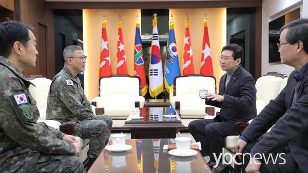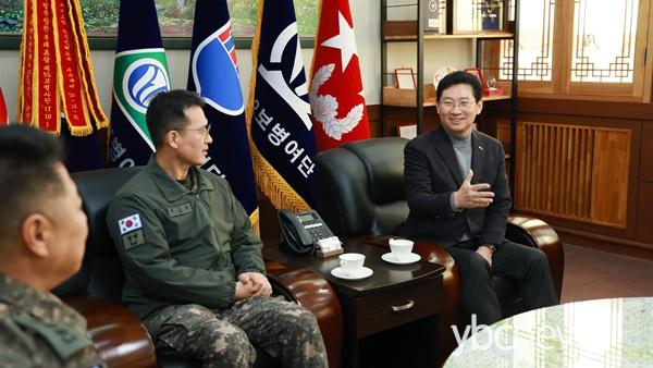 ÀÌ ½ÃÀåÀº ÀÌ¾î µ¿¿øÀü·Â»ç·ÉºÎ¸¦ ¹æ¹®ÇØ ±è°ü¼ö »ç·É°ü(¼ÒÀå)°ú ±º °ü°èÀÚµéÀ» ¸¸³µ´Ù.