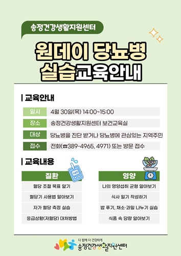 ÀÌ¿¡ ´ç´¢º´ ¿¹¹æ°ü¸®¸¦ À§ÇÑ ±³À°ÀÌ ¼ÛÁ¤°Ç°­»ýȰÁö¿ø¼¾ÅÍ º¸°Ç±³À°½Ç¿¡¼­ ¿î¿µµÇ¸ç ½Ç½ÀÀ§ÁÖÀÇ ±³À°À¸·Î ±¸¼ºµÇ¾î ÀÚ½ÅÀÇ Ç÷´ç ¹× ½Ä½À°ü¿¡ ´ëÇÑ ÀÌÇØ¿Í °ü½ÉÀ» ÁõÁø½Ã۰í, ´ç´¢º´ °ü¸®¿¡ ÇÊ¿äÇÑ ½ÇÁúÀûÀÎ ´É·ÂÀ» ¹è¾çÇÏ´Â µ¥ ÁßÁ¡À» µÎ°í ÀÖ´Ù.