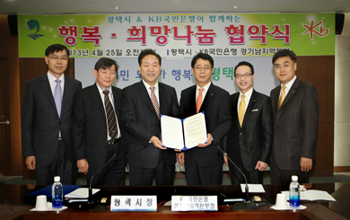 À̳¯ Çù¾à½Ä¿¡´Â ±è¼±±â ÆòÅýÃÀå, È«¼®Ã¶ KB±¹¹ÎÀºÇà °æ±â³²Áö¿ªº»ºÎÀå, ¿ìÁ¦Ã¢ ÆòÅÃÁß¾ÓÁöÁ¡Àå, ÀÌÁ¾ÈÆ ÆòÅÃÁöÁ¡Àå, ÇÏÅÂ¿Ï °æ±â³²Áö¿ª ºÎÁöÁ¡Àå, È«¼®È¯ Áß¾ÓºÎÁöÁ¡Àå, º¹ÁöÁ¤Ã¥°úÀå, »ýȰÁö¿ø°úÀå µî °ü°èÀÚµéÀÌ Âü¼®ÇÑ °¡¿îµ¥ ½Ç½ÃµÆ´Ù.