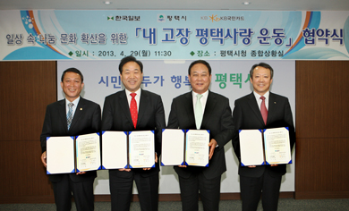 ÆòÅýô 29ÀÏ ½Ãû Á¾ÇÕ»óȲ½Ç¿¡¼ ±è¼±±â ÆòÅýÃÀå°ú ÀÌÈñÅ ÆòÅýÃÀÇȸ ÀÇÀå, ¿ÀÅÿµ ºÎ½ÃÀå, ±¹¡¤¼ÒÀå°ú ¹ÚÁø¿ Çѱ¹ÀϺ¸ ºÎȸÀå, Á¤¼øÇ¥ º»ºÎÀå, ¹ÚÁö¿ì KB±¹¹ÎÄ«µå ºÎ»çÀå, ÃÖÇå¼® ÁöÁ¡Àå µîÀÌ Âü¼®ÇÑ °¡¿îµ¥ '³» °íÀå ÆòÅûç¶û'¿îµ¿ Çù¾à½ÄÀ» °¡Á³´Ù°í ¹àÇû´Ù.