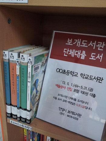 ¾È¼º½Ã¸³ º¸°³µµ¼°ü¿¡¼´Â Àα٠ÃʵîÇб³¿¡ Ã¥À» ¹è´ÞÇϰí, Á¤±âÀûÀ¸·Î ±³Ã¼ Á¦°øÇÏ´Â ¡®ÃʵîÇб³ ´Üü´ëÃ⡯ »ç¾÷À» 2013³â ¿¬Áß ¿î¿µÇÑ´Ù.