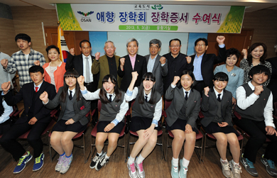 ¿À»ê½Ã ¾ÖÇâÀåÇÐȸ(ÀÌ»çÀå °û»ó¿í)´Â Áö³ 3ÀÏ ½Ãû ¹°Çâ±â½Ç¿¡¼ 2013³â ¾ÖÇâ ÀåÇлýÀ¸·Î ¼±¹ßµÈ ´ëÇлý°ú °íµîÇлý¿¡°Ô ÀåÇÐÁõ¼ ¼ö¿©½ÄÀ» °¡Á³´Ù.