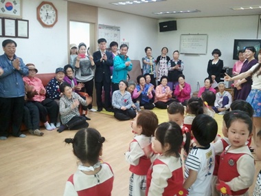 1ºÎ Àç·ÕÀÜÄ¡¿¡¼´Â 20¸íÀÇ ¿ø¾Æ¿Í 4¸íÀÇ ±³»ç°¡ 50¿©¸íÀÇ ¾î¸£½ÅµéÀÇ °¡½¿¿¡ Á÷Á¢ ¸¸µç Ä«³×À̼ÇÀ» ´Þ¾Æ ÁÖ°í, ÁغñÇÑ ³ë·¡¿Í À²µ¿(¸ÚÀïÀÌ Å丶Åä, Âü ÁÁÀº¸»)À» ¼±º¸¿´À¸¸ç, À̾î ÀÌÀç¼÷ ¼±»ý´ÔÀÌ ÁغñÇÑ ¸¶¼ú¼î·Î ¾î¸£½Åµé¿¡°Ô Å« ¿ôÀ½À» ¼±»çÇß°í, 2ºÎ¿¡¼´Â 70¿©¸íÀÇ ºÎ¸ðµéÀÌ Á÷Á¢ ÁغñÇÑ À½½Ä ¹× LG½´ÆÛ·¿(´ëÇ¥ ±èÀçÈ£)¿¡¼ Áö¿øÇÑ ´Ù°úµî(»§,À½·á)À» ´ëÁ¢Çß´Ù.