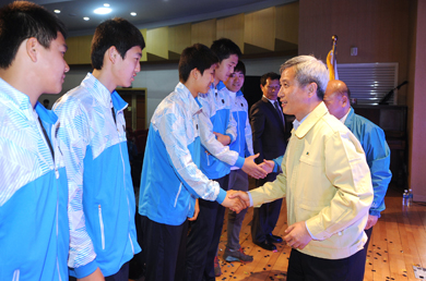 À̹ø ÃâÁ¤½ÄÀº Áö³ Á¦58ȸ °æ±âµµÃ¼À°´ëȸ Á¾ÇÕ 4À§ÀÇ ¼ºÀûÀ» °ÅµÐ ¿À»ê½Ã ¼±¼ö´ÜÀÌ ±×µ¿¾È ±¸½½¶¡À» È긮¸ç ¿ì½ÂÀ» ÇâÇÑ ´ã±ÝÁúÀ» ¸¶Ä¡°í ¼±¼ö´ÜÀÇ ´Ü°á°ú »ç±â¾Ó¾çÀ» À§ÇØ ¸¶·ÃµÆ´Ù.
