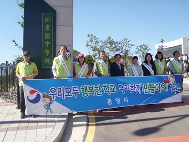 Å뿵½Ã(½ÃÀå ±èµ¿Áø)´Â 21ÀÏ ¿ÀÀü 7½Ã20ºÐºÎÅÍ 8½Ã10ºÐ±îÁö µ¿¿øÁß.°íµîÇб³ ¹× ¿ø¹®°í°³ ¿À°Å¸® ¾Õ¿¡¼­ Å뿵±³À°Áö¿øÃ», Å뿵½Ãû¼Ò³âÁöµµÀ§¿ø, Å뿵½Ã¾Æµ¿À§¿ø µî 40¿©¸íÀÌ Âü¿©ÇÑ °¡¿îµ¥ û¼Ò³âÀ» Çб³Æø·Â°ú À¯ÇØÇÑ È¯°æÀ¸·ÎºÎÅÍ º¸È£Çϱâ À§ÇÑ ¹Î.°üÇÕµ¿ Ä·ÆäÀÎÀ» ¹ú¿´´Ù.