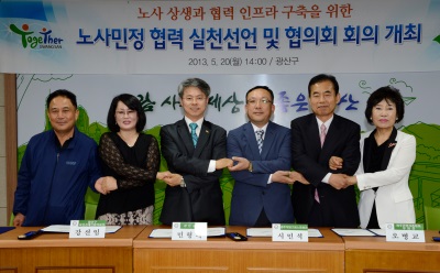 Áö³ 20ÀÏ ±¤»ê±¸ ³ë»ç¹ÎÁ¤ÇùÀÇȸ´Â ±¤»ê±¸Ã»¿¡¼ ±¤»ê±¸ ¼ÒÀç ±â¾÷ÀÇ ±Ù·ÎÀÚ¿Í »ç¿ëÀÚ ´ëÇ¥ µîÀÌ Âü°¡ÇÑ °¡¿îµ¥ ¡®2013³â Á¦1Â÷ ³ë»ç¹ÎÁ¤ÇùÀÇȸ ȸÀÇ¡¯¸¦ ¿¾ú´Ù. ȸÀÇ¿¡¼´Â ¡®±¤»ê±¸ ³ë»ç¹ÎÁ¤ Çù·Â ½Çõ ¼±¾ð¹®¡¯À» äÅÃÇϰí 3³â ¿¬¼Ó ³ë»ç°¡ Çù·ÂÇØ¼ °øµ¿ÀÇ ¹®Á¦¸¦ Ç®¾î°¡±â·Î Çß´Ù.