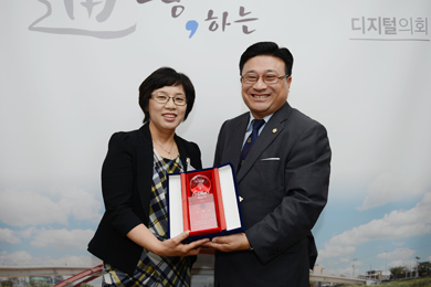 ÀÇȸÀÇÀå½Ç ¹®ÅÎÀ» ³·Ãß°í ½Ã¹Î°ú ¼ÒÅëÇÏ´Â ÀÇÁ¤È°µ¿À» ÆîÄ¡±â À§ÇØ 5´ë ¸í¿¹ÀÇÀåÀ¸·Î ±è¹Ì¿Á(¿À»ê½ÃÇб³¾î¸Ó´ÏȸÀå´Ü¿¬ÇÕȸ ȸÀå)À» À§ÃËÇß´Ù.