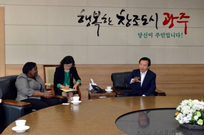 ° ½ÃÀåÀº ÀÌ ÀÚ¸®¿¡¼ ±¤Áֽð¡ Áö¼Ó°¡´ÉÇÑ Àαǵµ½Ã·Î ³ª¾Æ°¡±â À§ÇØ ÃßÁøÇϰí ÀÖ´Â ÀαÇÀü´ãºÎ¼ ¼³Ä¡, ÀαÇÇåÀå¼±Æ÷, ÀαÇÁöÇ¥ °³¹ß, ÀαǿȺÎÁî¸Ç µµÀÔ, ÀαÇÁõÁø½Ã¹ÎÀ§¿øÈ¸, ¼¼°èÀαǵµ½ÃÆ÷·³, Àαǵµ½Ã°¡À̵å¶óÀÎ(±¤ÁÖÄÄÆÑ) µî¿¡ ´ëÇØ ¼³¸íÇϰí, Àü ¼¼°è Àαǵµ½Ã È®»êÀ» À§ÇØ À¯¿£ÀαÇÀÌ»çȸÀÇ Àû±ØÀûÀÎ ¿ªÇÒ°ú °ü½ÉÀ» ´çºÎÇß´Ù.