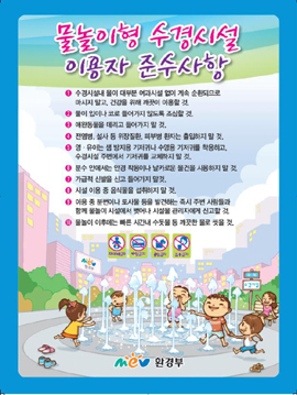 ÀÌ¿¡ µû¶ó ȯ°æºÎ´Â 2010³â 8¿ù °æ°ü¿ëÀ¸·Î ¼³Ä¡µÈ ºÐ¼ö µîÀÇ ¼ö°æ½Ã¼³ÀÌ Á¡Â÷ ¾î¸°ÀÌ ¹° ³îÀÌÅÍ·Î ÀÌ¿ëµÊÀ» °í·ÁÇØ °Ç°º¸È£¸¦ À§ÇØ ¡¸¹°³îÀÌÇü ¼ö°æ½Ã¼³ ¼öÁú°ü¸®Áöħ¡¹À» Á¦Á¤Çϰí ÁöÀÚü¿¡¼ À̸¦ ÁØ¿ëÇÒ ¼ö ÀÖµµ·Ï Çϰí ÀÖ´Ù.