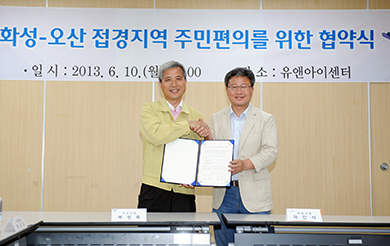 À̹ø Çù¾àÀº ¿À»ê½ÃÀå°ú ȼº½ÃÀåÀÌ ¾ç µµ½Ã °£ ÇàÁ¤±¸¿ª Á¢°æÁö¿ª¿¡ »ì°í ÀÖ´Â ÁֹεéÀÇ ÆíÀǸ¦ À§ÇØ ÇÔ²² ³ë·ÂÇϱâ·Î ¶æÀ» ¸ð¾Æ ½ÃÀÛµÆÀ¸¸ç »óÈ£°£ ³× °¡Áö »çÇ׿¡ ´ëÇØ ¼·Î Çù·ÂÇϱâ·Î Çß´Ù.