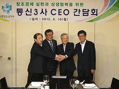 ÀÌ¿¡, Åë½Å 3»ç CEOµéÀº °¢ »çÀÇ Ã¢Á¶°æÁ¦ ½ÇÇöÀ» À§ÇÑ ¿ªÇÒ°ú ´ëÁß¼Ò ±â¾÷°£ »ó»ýÇù·Â ¹æ¾ÈÀ» ¹àÈ÷¸é¼, Åë½Å ºÐ¾ß ´ë±â¾÷µéÀÌ ÈûÀ» ÇÕÃÄ ´ëÁß¼Ò±â¾÷ÀÌ µ¿¹Ý ¼ºÀåÇØ ³ª°¥ ¼ö Àִ ȯ°æ Á¶¼º¿¡ ¾ÕÀå ¼±â·Î Çß´Ù.