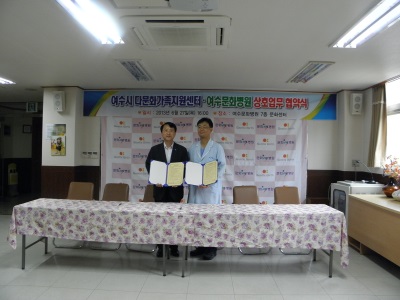 Áö³ 27ÀÏ ¿©¼ö½Ã´Ù¹®È°¡Á·Áö¿ø¼¾ÅͰ¡ ¿©¼ö¹®Èº´¿ø°ú ¾÷¹«Çù¾àÀ» ¸Î°í Áö¿ª ³» ´Ù¹®È °¡Á·¿¡ ´ëÇÑ Áö¿øÀ» ¾à¼ÓÇß´Ù.