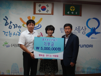 À̹ø¿¡ Àü´ÞµÈ Áö³ ±âºÎ±ÝÀº 2011³â 3¿ù¿¡ °á¼ºµÈ ¡®ÇູÀ» ¸¸µå´Â »ç¶÷µé¡¯À̶õ ºÀ»ç´Üȸ¿øµéÀÇ È¸ºñ¸ð±Ý¾× ¹× ÈÄ¿ø±ÝÀ¸·Î ¸¶·ÃµÆÀ¸¸ç, ȼº½Ã»õ¸¶À»È¸¸¦ ÅëÇØ ¾î·Á¿î ȯ°æ¿¡¼µµ Çо÷ÀÇ ²ÞÀ» ÆîÄ¥ ¼ö ÀÖµµ·Ï Áö¿ª ³»ÀÇ ºÒ¿ìÇÑ Ã»¼Ò³â°ú °á¿¬À» ¸Î¾î ¸Å¿ù Á¤±â ÈÄ¿ø±ÝÀ» Áö¿øÇÒ ¿¹Á¤ÀÌ´Ù.