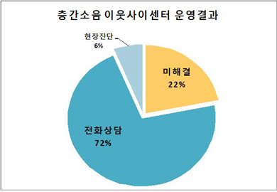 Ãþ°£¼ÒÀ½ ºÐÀïÀÇ ¹ýÀû Á¶Á¤±â±¸ÀΠȯ°æºÐÀïÁ¶Á¤À§¿øÈ¸¿¡¼ ó¸®ÇÑ ½ÇÀû(Áö³ 10³â°£ 400¿©°Ç)°ú ºñ±³ÇØ º¼ ¶§, ´Ü±â°£¿¡ ¸¹Àº ¹Î¿øÀ» ÇØ°áÇÑ °ÍÀº ÀÌ¿ô»çÀ̼ºñ½º°¡ ¼Õ½±°Ô ÀÌ¿ëÀÌ °¡´ÉÇϰí, Ãþ°£¼ÒÀ½ÀÌ ÀÌ¿ô»çÀ̼¾ÅͰ¡ Ãþ°£¼ÒÀ½ ¹®Á¦ ÇØ°á»ç ¿ªÇÒÀ» Ãæ½ÇÈ÷ ¼öÇàÇϰí ÀÖÀ½À» ³ªÅ¸³½´Ù.