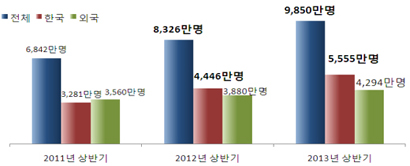 »ó¹Ý±â ±â·Ï »ç»ó Çѱ¹¿µÈ °ü°´ÀÌ 5000¸¸¸íÀ» ³ÑÀº °ÍÀº À̹øÀÌ Ã³À½À¸·Î, ÀÌ´Â Àü³âµµ °°Àº ±â°£¿¡ ºñÇØ 25%(1109¸¸¸í) ´Ã¾î³ ¼öÄ¡´Ù.