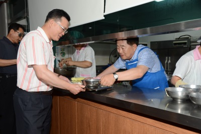 Á¶ÃæÈÆ ¼øÃµ½ÃÀåÀÌ 4ÀÏ ½Ãû Á÷¿øµéÀ» À§ÇØ ±¸³»½Ä´ç¿¡¼­ Á¡½É µµ¿ì¹Ì¸¦ Çϸç Ȱ¦ ¿ô°í ÀÖ´Ù.
