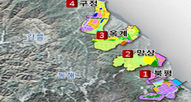 °­¸ª¡¤µ¿ÇØ ÀÏ¿ø 8.25§´(250¸¸Æò) ºÎÁö¿¡ Á¶¼ºµÇ´Â µ¿ÇؾȱǰæÁ¦ÀÚÀ¯±¸¿ªÀº ºÏÆò ±¹Á¦º¹ÇÕ»ê¾÷Áö±¸(÷´Ü¼ÒÀ硤¹°·ùºñÁî´Ï½º), ¸Á»ó Ç÷ζó½ÃƼ(°ü±¤), ¿Á°è ÷´Ü¼ÒÀçÀ¶ÇÕ»ê¾÷Áö±¸(½Å¼ºÀ嵿·Â), ±¸Á¤ ź¼ÒÁ¦·Î½ÃƼ(¿Ü±¹ÀÎ Á¤ÁÖ) µî 4°³ ±Ç¿ªÀ¸·Î ±¸¼ºµÈ´Ù.